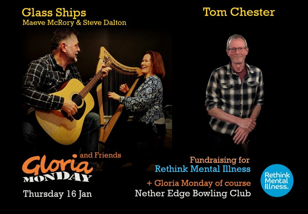 Two lovely guests to entertain you (and Gloria Monday of course) and all in a very good cause.