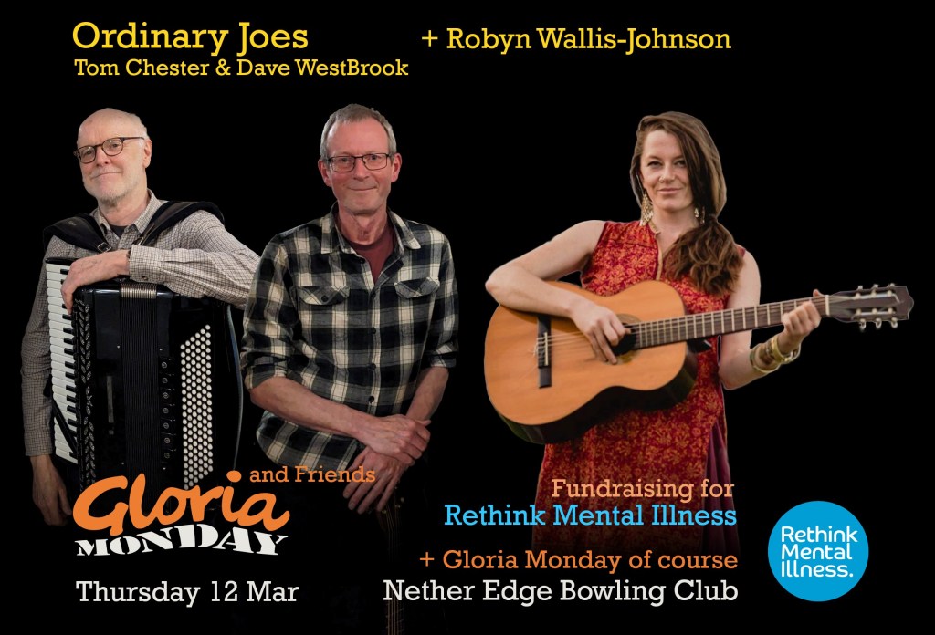 Plus your resident Orchestra of Truth, Gloria Monday. All proceeds as usual will go to Rethink Mental Illness